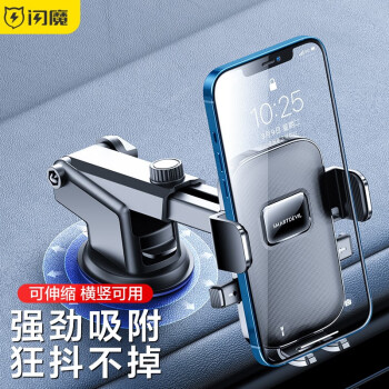 闪魔车载手机支架汽车导航支架仪表台中控台前挡风玻璃吸盘式支架【炫亮黑】可横屏吸盘式手机架